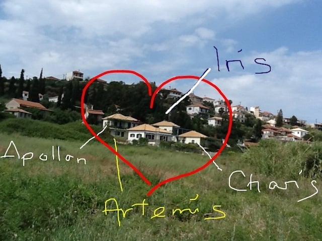 Das Grundstück mit den vier ähnlichen Ferienhäusern befindet sich seit 160 Jahren im Besitz der Familie Sipsas von Koroni. Vassilios Tsiotos und seine Frau Mina Sipsas besassen die Idee und die Energie, diese vier Häuser ohne Strassenanschluss zu bauen. Vassilios begleitete die Planung und den Bau der Häuser von Anfang an. Er legte selber tüchtig Hand an. Mit seiner enormen Energie und Beharrlichkeit und mit viel Liebe zum Detail baute er die vier Häuser in weniger als zwei Jahren